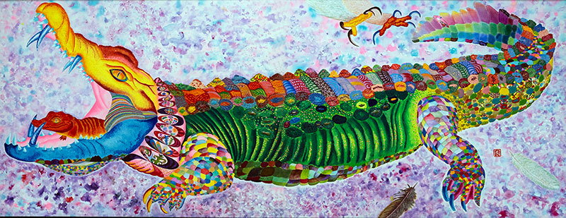 自分の目で見たもの、感じたものを、独特のオリジナリティで様々な想いの世界観を創り上げ描いている。独自の色彩感覚にてカラフルに描かれた作品には、自分や家族との生活、たくさんの人との関わりから生まれてくるメッセージが入っています。数多くの賞を受賞。